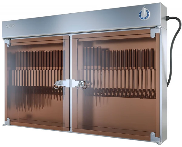Особенностью прибора является возможность обеззараживания ножей или других приборов при помощи ультрафиолетового излучения в диапазоне длин волн 205 - 315 нм. Прибор оснащен датчиком времени - таймером, рассчитанным на максимальное время облучения - 60 мин.