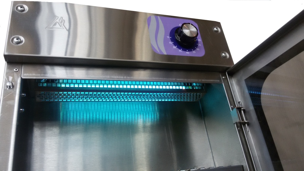 Стекло двери тонировано и является барьером выходая УФ излучения наружу.