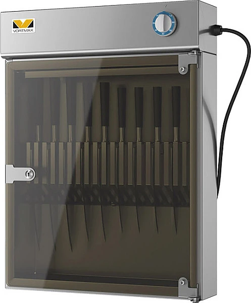 Стерилизатор для ножей Vortmax KS 18 с УФ-обработкой обеспечивает абсолютную чистоту кухонного инструмента, не разрушая структуру материала, и препятствует распространению микроорганизмов.