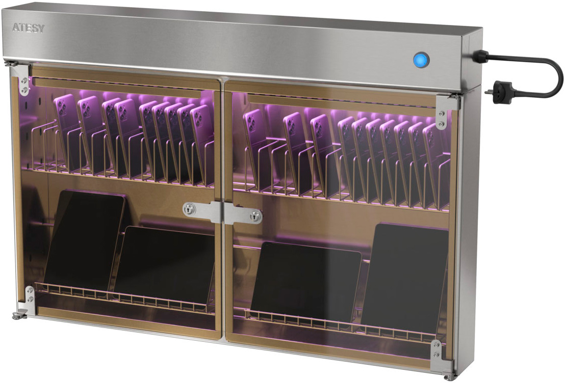 Стерилизатор смартфонов и гаджетов Atesy СТС-2-02-1 предназначен для обеззараживания сотовых телефонов и планшетов, за счет воздействия ультрафиолетового излучения на болезнетворные организмы в диапазоне длин волн 205-315 нм.