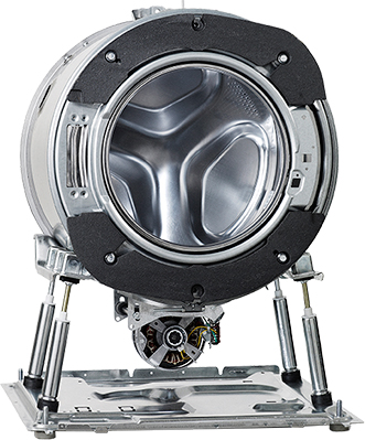Профессиональная конструкция крепления барабана Quattro — барабан закреплен на четырех независимых амортизаторах. Стирка и отжим на высоких оборотах происходит практически без вибраций и шума.