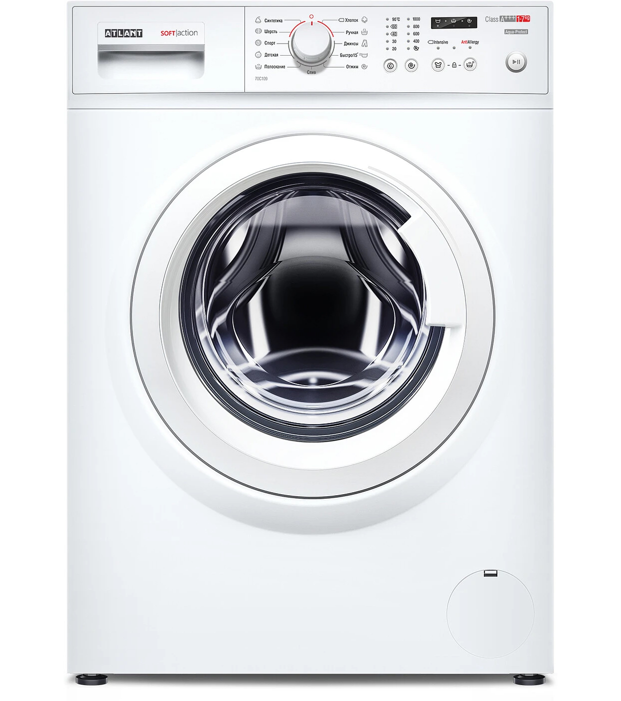 Стиральная машина Atlant СМА 70С109-00 серии SOFT ACTION с фронтальной загрузкой станет для вас идеальным помощником. Максимальная загрузка белья - 7 кг, вместительный барабан, дверца люка открывается на 180°, а это значительно облегчает загрузку и выгрузку белья.