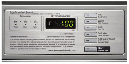 Система стирки с гигиеническим уходом 3+1. Система гигиенической очистки обеспечивает чистоту стиральных машин до, во время и после каждого использования. Три цикла: сначала 3-минутный цикл очистки барабана перед использованием; затем гигиенический цикл «дезинфекция» для тканей; и, наконец, цикл интенсивной очистки барабана, который можно запустить после окончания загрузки.