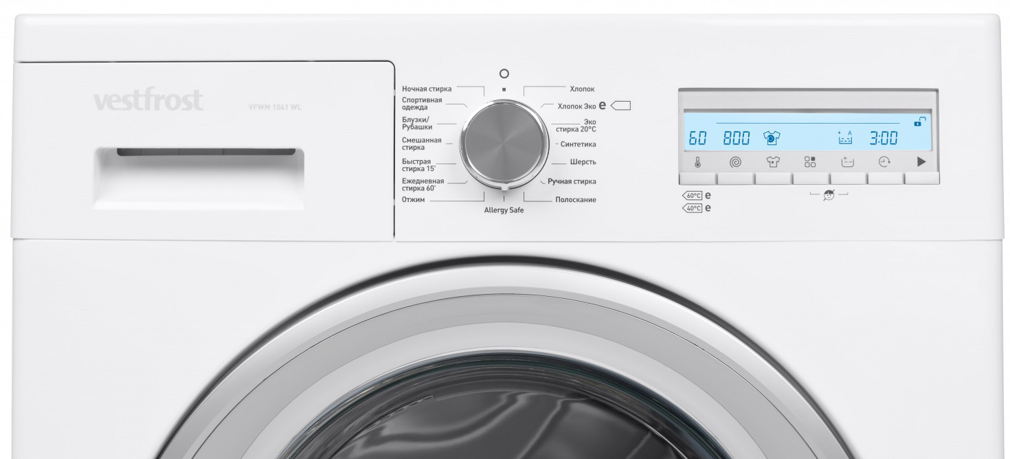 Система Eco-Logic Позволяет контролировать количество загружаемого белья, а также стирального порошка, тем самым предотвращая перегрузку и увеличивая срок службы машины. Машина сама рассчитывает оптимальную длительность программы, количество воды и энергопотребление согласно количеству белья в барабане, а также необходимое количество моющего средства.