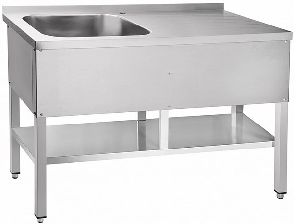 Основными элементами конструкции стола являются глубокая вместительная мойка, четыре ножки с регулируемой опорой и борт, встроенный по всей длине стола.