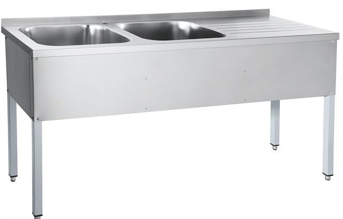 Основными элементами конструкции стола являются глубокая вместительная мойка, четыре ножки с регулируемой опорой и борт, встроенный по всей длине стола.