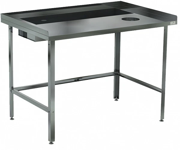 Стол имеет на столешнице три борта высотой 40 мм, ванну и отверстие для сбора отходов, предназначен для установки около стены.