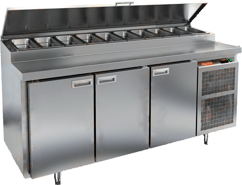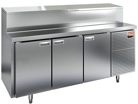 Стол для пиццы Hicold PZ1-111/GN (1/3H) со столешницей из нержавеющей стали и распашными дверями используется для раскатки теста и обработки ингредиентов для приготовления пиццы, а также для охлаждения и кратковременного хранения скоропортящихся продуктов и напитков на предприятиях общественного питания и торговли.