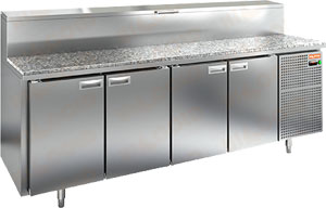 Стол для пиццы Hicold PZ1-1111/GN (1/3H) с гранитной столешницей и распашными дверями используется для раскатки теста и обработки ингредиентов для приготовления пиццы, а также для охлаждения и кратковременного хранения скоропортящихся продуктов и напитков на предприятиях общественного питания и торговли.