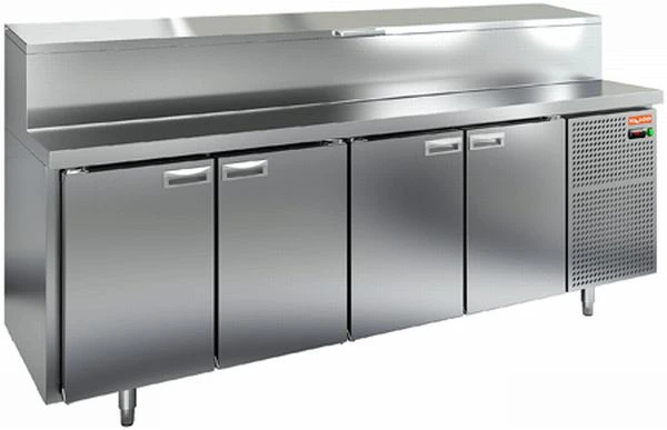 Стол для пиццы Hicold PZ1-1111/GN (1/3H) со столешницей из нержавеющей стали и распашными дверями используется для раскатки теста и обработки ингредиентов для приготовления пиццы, а также для охлаждения и кратковременного хранения скоропортящихся продуктов и напитков на предприятиях общественного питания и торговли.