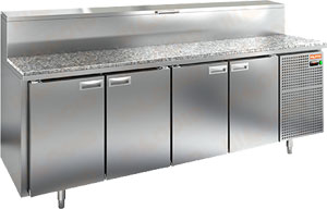 Стол для пиццы Hicold PZ2-1111/GN (1/6H) с гранитной столешницей и и распашными дверями используется для раскатки теста и обработки ингредиентов для приготовления пиццы, а также для охлаждения и кратковременного хранения скоропортящихся продуктов и напитков на предприятиях общественного питания и торговли.