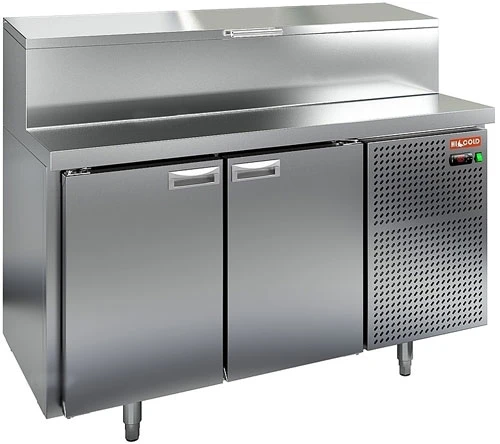 Стол для пиццы Hicold PZ2-11GN (1/6) со столешницей из нержавеющей стали и распашными дверями используется для раскатки теста и обработки ингредиентов для приготовления пиццы, а также для охлаждения и кратковременного хранения скоропортящихся продуктов и напитков на предприятиях общественного питания и торговли.