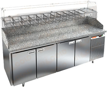 Стол для пиццы Hicold PZ3-1111/GN (без витрины) с гранитной столешницей и распашными дверями используется для раскатки теста и обработки ингредиентов для приготовления пиццы, а также для охлаждения и кратковременного хранения скоропортящихся продуктов и напитков на предприятиях общественного питания и торговли.