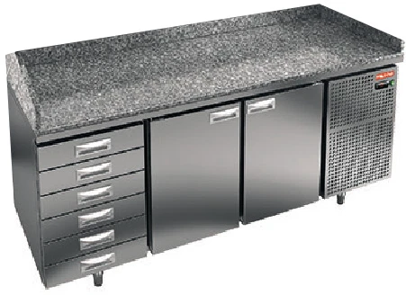 Стол для пиццы Hicold PZ4-11/GN 6R (без витрины) с гранитной столешницей и распашными дверями используется для раскатки теста и обработки ингредиентов для приготовления пиццы, а также для охлаждения и кратковременного хранения скоропортящихся продуктов и напитков на предприятиях общественного питания и торговли.