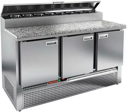 Стол для пиццы Hicold PZE1-111/GN (1/3H) с каменной столешницей и распашными дверями используется для раскатки теста и обработки ингредиентов для приготовления пиццы, а также для охлаждения и кратковременного хранения скоропортящихся продуктов и напитков на предприятиях общественного питания и торговли.