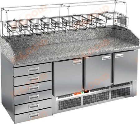 Стол для пиццы Hicold PZE4-111/GN используется для раскатки теста и обработки ингредиентов для приготовления пиццы, а также для охлаждения и кратковременного хранения скоропортящихся продуктов и напитков на предприятиях общественного питания и торговли.