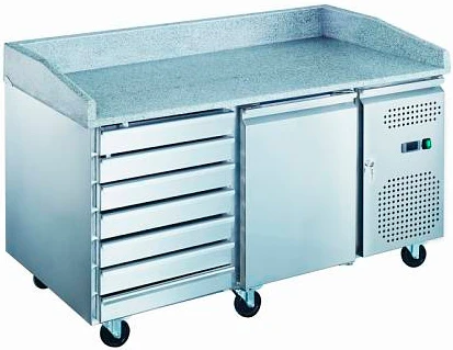 Стол для пиццы Hurakan HKN-PZG2-16 используется на предприятиях общественного питания и торговли для хранения пиццы, салатов, сэндвичей и других блюд и ингредиентов к ним в охлажденном состоянии.
