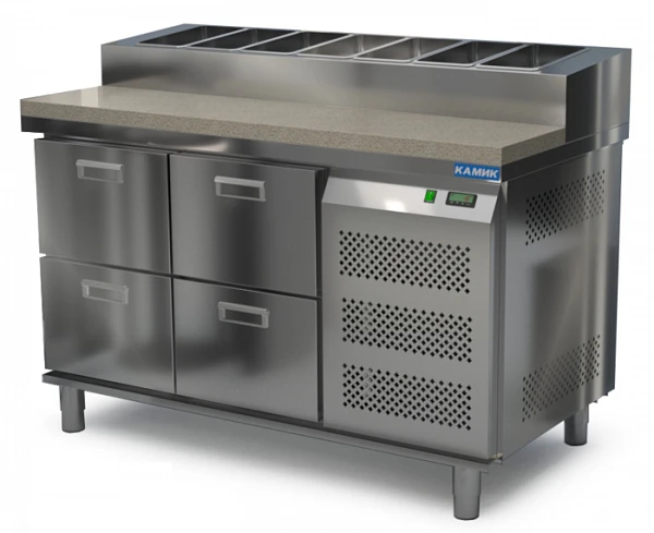 Стол для пиццы Камик СОП-041473К используется на предприятиях общественного питания и торговли для хранения пиццы, салатов, сэндвичей и других блюд и ингредиентов к ним в охлажденном состоянии.