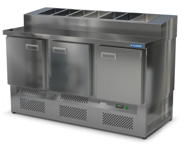 Стол для пиццы Камик СОП-301576Н используется на предприятиях общественного питания и торговли для хранения пиццы, салатов, сэндвичей и других блюд и ингредиентов к ним в охлажденном состоянии.