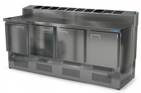 Стол для пиццы Камик СОП-402073Н используется на предприятиях общественного питания и торговли для хранения пиццы, салатов, сэндвичей и других блюд и ингредиентов к ним в охлажденном состоянии.