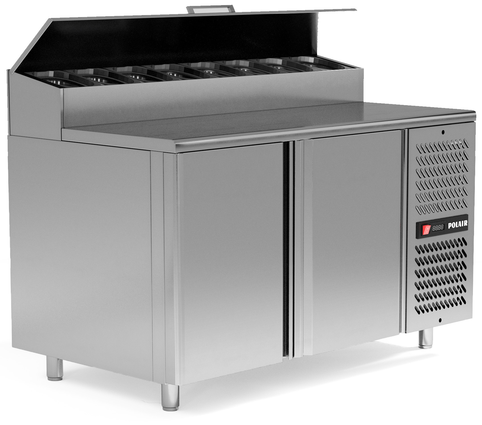 Стол для пиццы Polair TM2ENvt-G с интегрированной витриной для ингредиентов помогут организовать идеальное рабочее место в пиццерии и ресторане итальянской кухни.