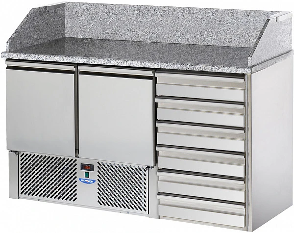 Для производства столов для пиццы используют только качественные материалы, вы можете выбрать стол со столешницей из гранита или из нержавеющей стали.