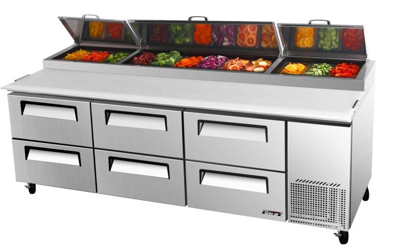 Стол для пиццы Turbo Air CTPR-93-2D-6 предназначен для обработки ингредиентов, используемых для приготовления пиццы, охлаждения и кратковременного хранения продуктов на предприятиях общественного питания и торговли.