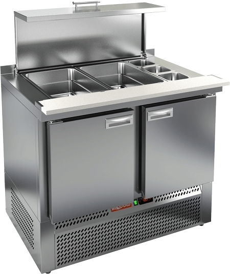 Стол для салатов Hicold SLE3-11GN (с крышкой) со столешницей из полипропилена предназначен для обработки ингредиентов, используемых для приготовления салатов, охлаждения и кратковременного хранения скоропортящихся продуктов и напитков на предприятиях общественного питания и торговли.