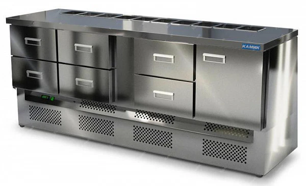 Стол для салатов Камик СОН-162076КН предназначен для кратковременного хранения ингредиентов для приготовления салатов на предприятиях пищевой промышленности, общественного питания и торговли.