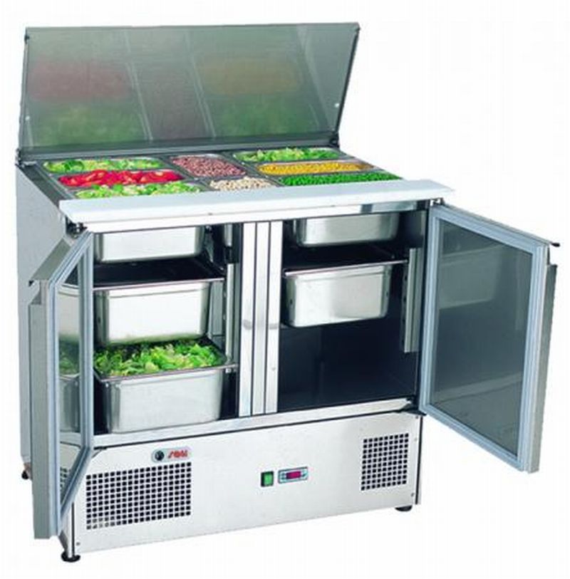Стол для салатов SAGI S 900 используется для хранения и подготовки к раздаче готовых салатов и охлажденных блюд.