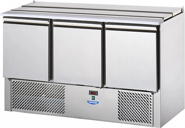 Стол для салатов Tecnodom SLV03EKO используется для обработки ингредиентов, используемых для приготовления пиццы, салатов и других блюд, а также для охлаждения и кратковременного хранения скоропортящихся продуктов и напитков.