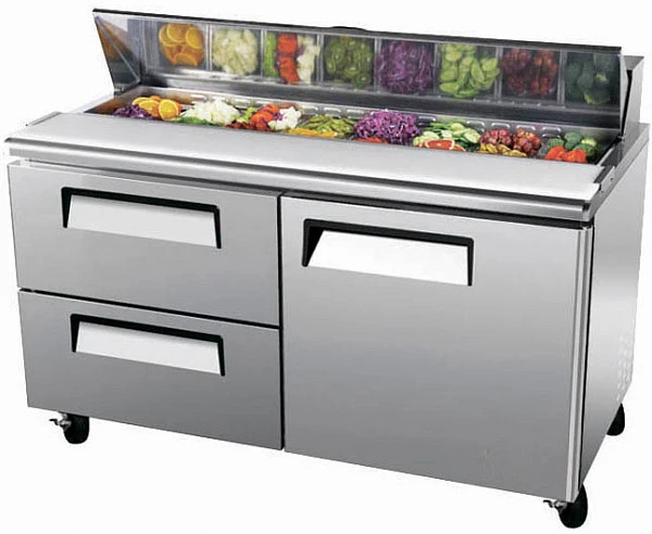 Стол для салатов Turbo Air CMST-48-2D-2 используется на предприятиях пищевой промышленности, общественного питания и торговли для обработки ингредиентов для приготовления сэндвичей, охлаждения и кратковременного хранения скоропортящихся продуктов и напитков.