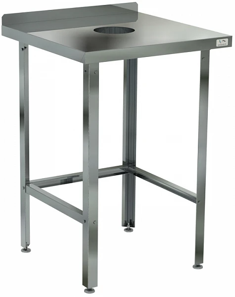 Стол для сбора пищевых отходов с бортом КОБОР СПОБ-70/70 - широко применяется в различных производственных цехах предприятий общественного питания, супермаркетах, комбинатах пищевой промышленности для разделывания и обработки пищевых продуктов, а также в качестве вспомогательной поверхности для кухонного оборудования.