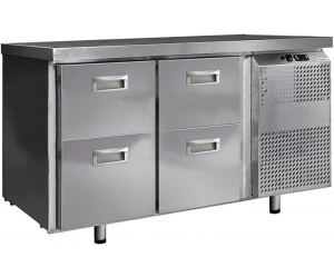 Стол холодильный Финист СХС-700-0/4 (1400х700х850) предназначен для хранения предварительно охлажденных мясных и рыбных полуфабрикатов, заготовок для салатов, молочной продукции, охлажденных напитков и других пищевых продуктов на предприятиях общественного питания и торговли. Модель оснащена расположенным сбоку агрегатным отсеком, 4 выдвижными ящиками, устойчивыми ножками с подпятниками, кабелем питания с евровилкой и кнопочной панелью управления с цифровым дисплеем. Корпус выполнен из высококачественной нержавеющей стали.