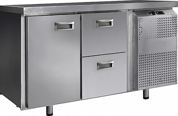 Стол холодильный Финист СХС-700-1/2 (1400х700х850) предназначен для хранения предварительно охлажденных мясных и рыбных полуфабрикатов, заготовок для салатов, молочной продукции, охлажденных напитков и других пищевых продуктов на предприятиях общественного питания и торговли. Модель оснащена распашной дверцей, устойчивыми ножками с подпятниками, кабелем питания с евровилкой и кнопочной панелью управления с цифровым дисплеем. Корпус выполнен из высококачественной нержавеющей стали.