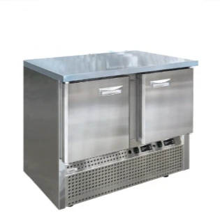 Холодильный стол выполнен из высококачественной пищевой нержавеющей стали. Столы могут производиться (выпускаться) с распашными дверями (ящиками), которые имеют надежные петли (для ящиков направляющие) с опцией доводчиков, что обеспечивает гарантированное закрытие и поддержание заданной температуры в рабочем объеме стола. Используется электрический блок управления с функцией автоматической оттайки. Передняя панель моторного отсека имеет большую площадь перфорации, что позволяет обеспечить холодильному агрегату поступление воздуха для охлаждения.