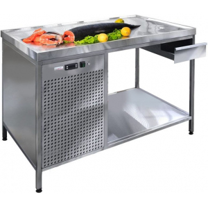 Стол холодильный Финист СХСо-1400-700 предназначен для разделки полуфабрикатов мяса и рыбы, а также для демонстрации и выкладки продуктов на предприятиях общественного питания и торговли. Модель оснащена расположенным сбоку агрегатным отсеком, столешницей с охлаждаемой поверхностью, открытой полкой для хранения инвентаря, выдвижным ящиком-лотком, устойчивыми ножками с подпятниками, кабелем питания с евровилкой и кнопочной панелью управления с цифровым дисплеем. Корпус выполнен из высококачественной нержавеющей стали.
