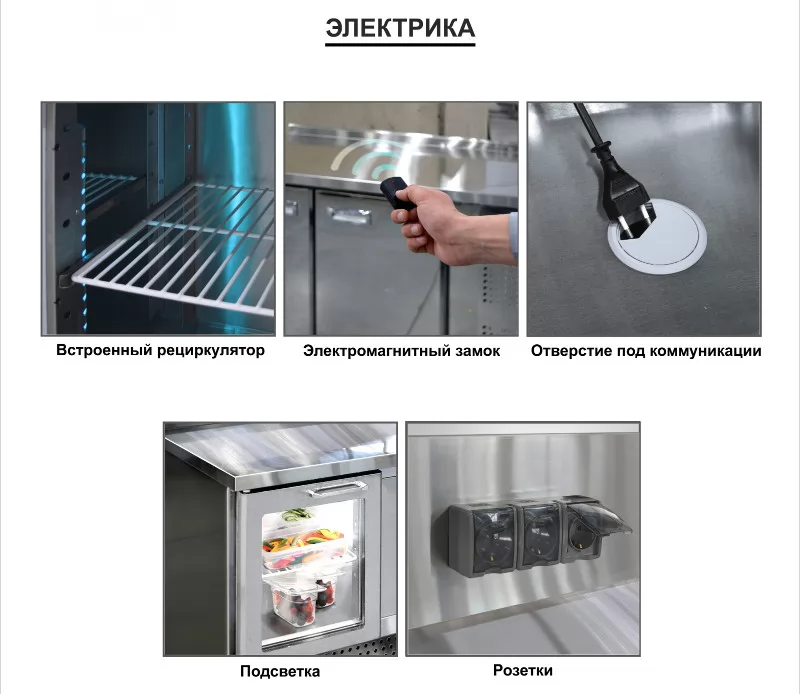 Пространство между внутренней и наружной стенкой заполнено пеной-теплоизолятором. Холодильный стол работает при температуре окружающей среды от +12 до +32°С.