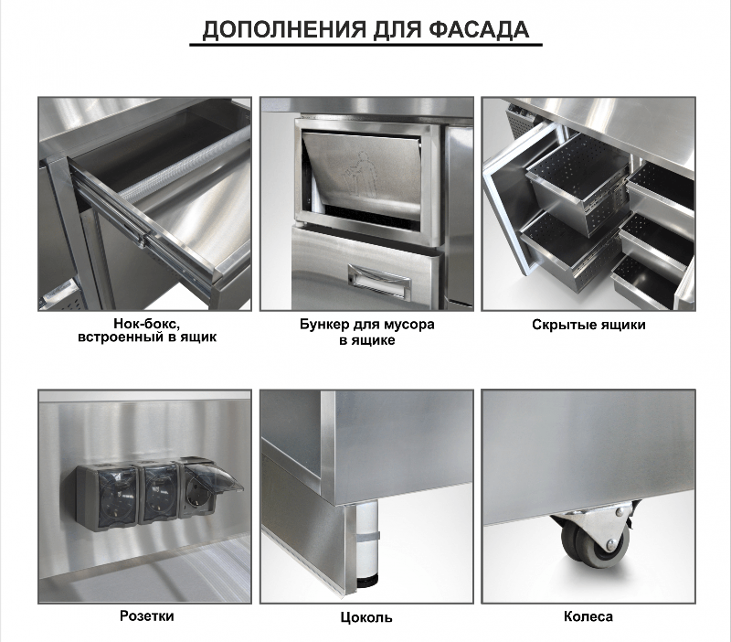 Пространство между внутренней и наружной стенкой заполнено пеной-теплоизолятором. Холодильный стол работает при температуре окружающей среды от +12 до +32°С.