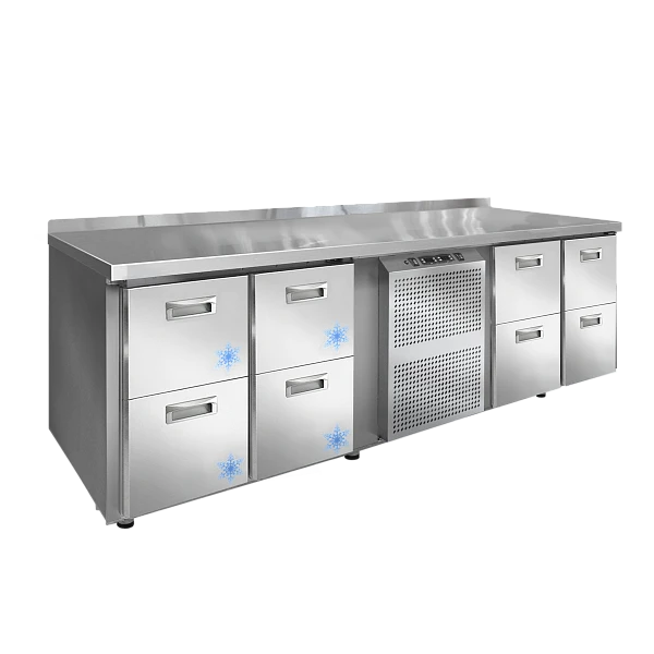 Стол комбинированный Финист КХС-700-2-2/2-2 призван в рамках ограниченного пространства кухни уместить холодильный и морозильный объём для хранения полуфабрикатов и заготовок.