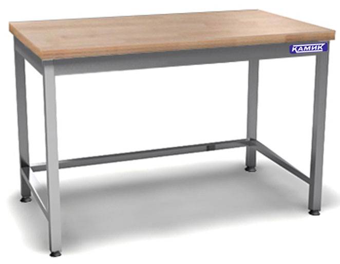 Стол со столешницей из массива бука (40 мм) для кондитерских и мучных цехов изготовлен полностью из нержавеющей стали.