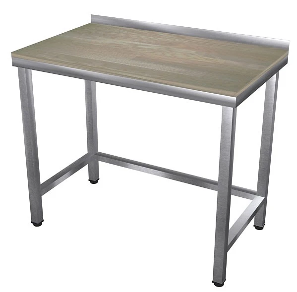 Стол со столешницей из массива бука (40 мм) для кондитерских и мучных цехов изготовлен полностью из нержавеющей стали.