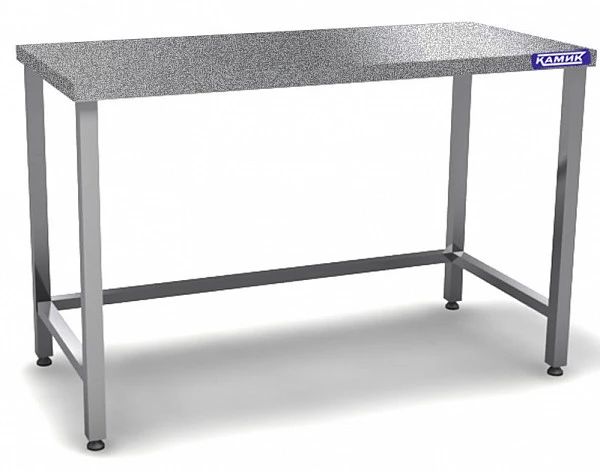 Стол со столешницей из гранита (20 мм) для кондитерских и мучных цехов изготовлен полностью из нержавеющей стали.