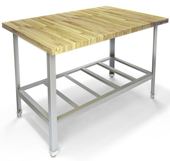 Стол кондитерский на нержавеющем каркасе из уголка AISI430, внизу полка-решетка, столешница из бука.