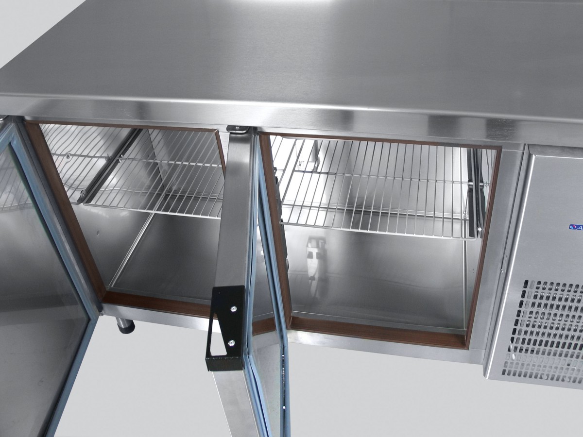 Рациональное использование рабочего пространства кухни за счет совмещения в одном изделии функции морозильного шкафа и рабочего стола. Может использоваться как самостоятельно, так и встраиваться в барные стойки.