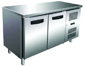 Изделие имеет столешницу без борта, 2 дверцы и 2 полки-решетки с направляющими GN 1/1 (скор.)