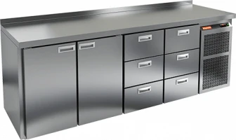 Стол состоит из столешницы, на которой можно раскатывать тесто и обрабатывать ингредиенты для приготовления блюд, и камеры, предназначенной для заморозки и хранения продуктов и напитков.
