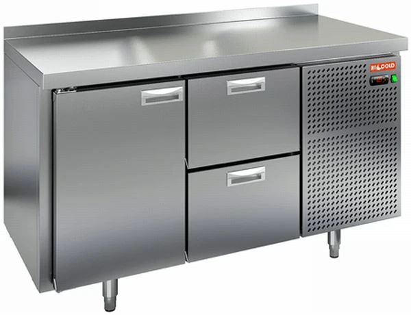 Стол морозильный Hicold GN 12/BT с распашной дверцей и ящиками и боковым расположением агрегата предназначен для обработки ингредиентов для приготовления блюд, а также для заморозки и хранения продуктов и полуфабрикатов на предприятиях общественного питания и торговли.