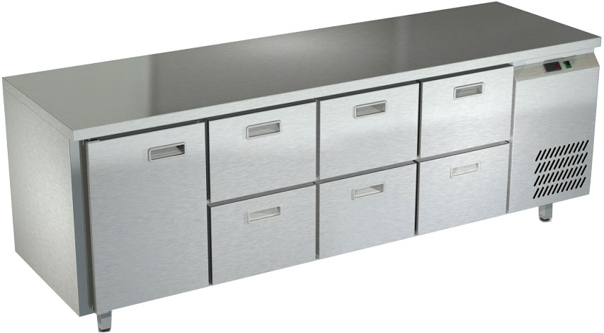 Морозильный стол совмещает в себе два вида кухонного оборудования: морозильника и рабочего стола повара.