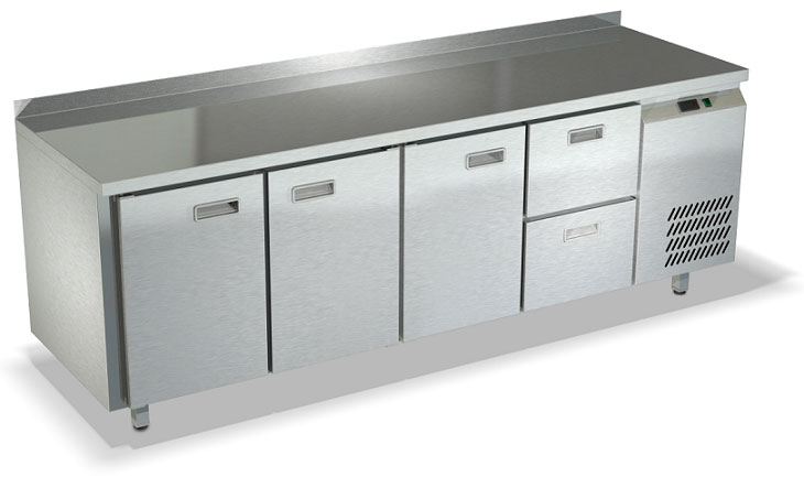 Морозильный стол совмещает в себе два вида кухонного оборудования: морозильника и рабочего стола повара.